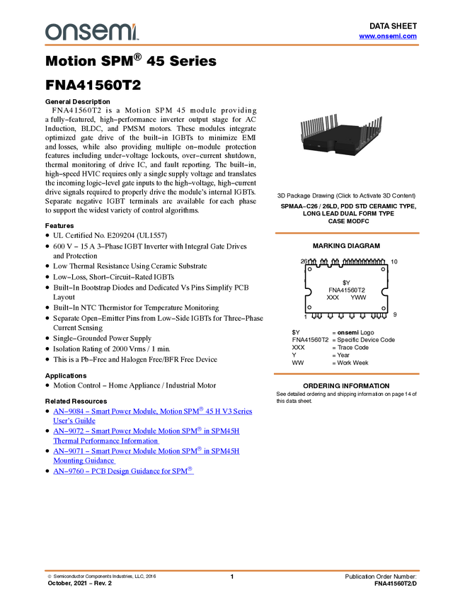 FNA41560T2 Intelligent Power Module (IPM), 600V, 15A