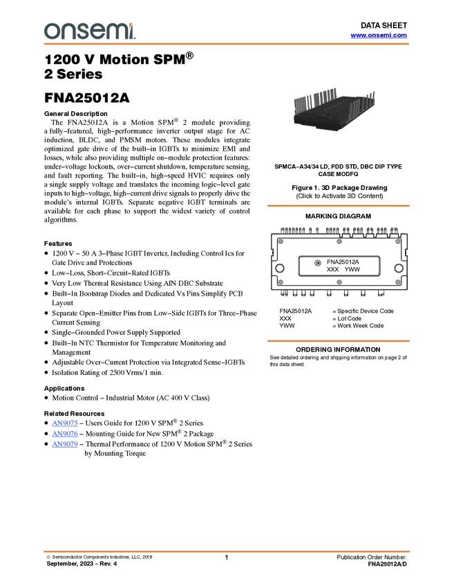 FNA25012A Intelligent Power Module, 1200 V, 50 A