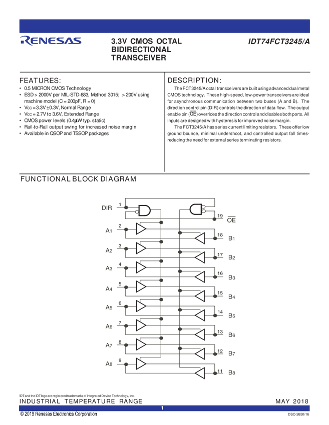 3.3V Octal Bidirectional Transceiver