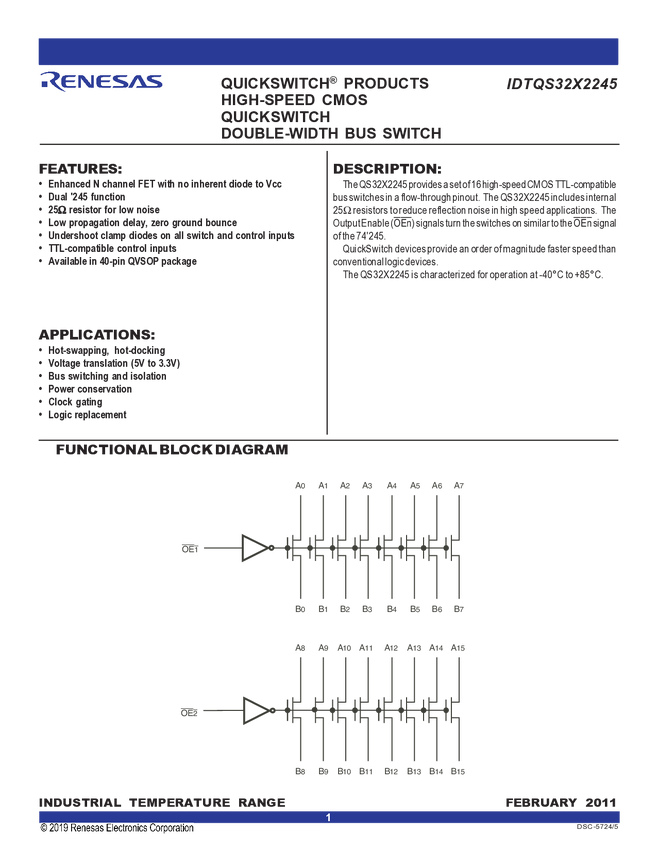 QS32X2245Q2G High-Speed CMOS QuickSwitch Double Width Bus Switch