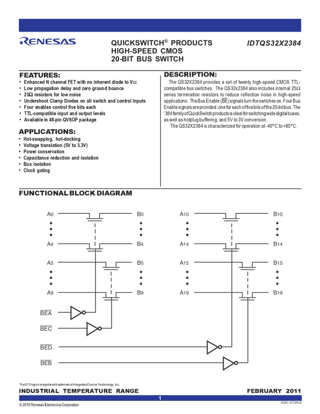 QS32X2384Q1G High-Speed CMOS 20-Bit Bus Switch