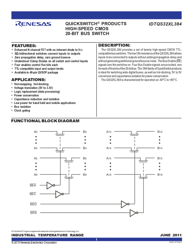 QS32XL384Q1G QuickSwitch High-speed CMOS 20-Bit Bus Switch