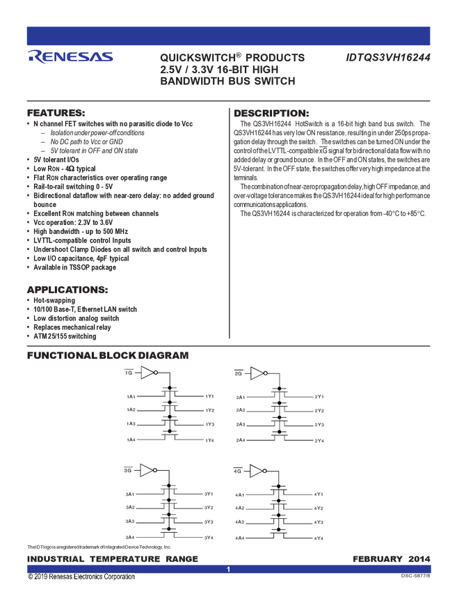 2.5V/3.3V 16-Bit High Bandwidth Bus Switch