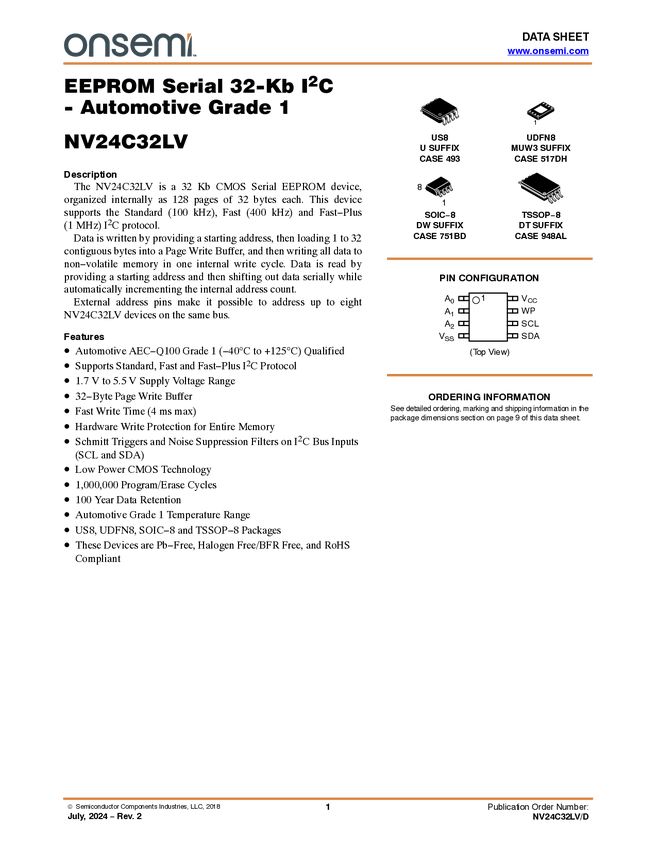 NV24C32LV EEPROM Serial 32-Kb I<sup>2C - Automotive Grade