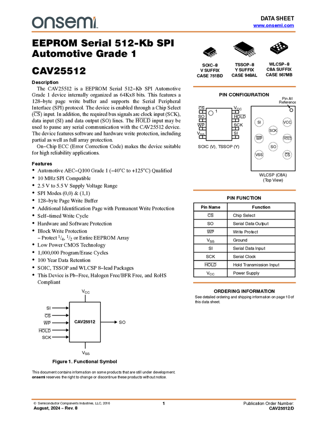 CAV25512 EEPROM Serial 512-Kb SPI - Automotive Grade