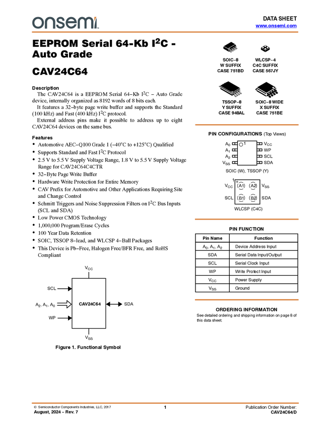 CAV24C64 EEPROM Serial 64-Kb I<sup>2C - Automotive Grade