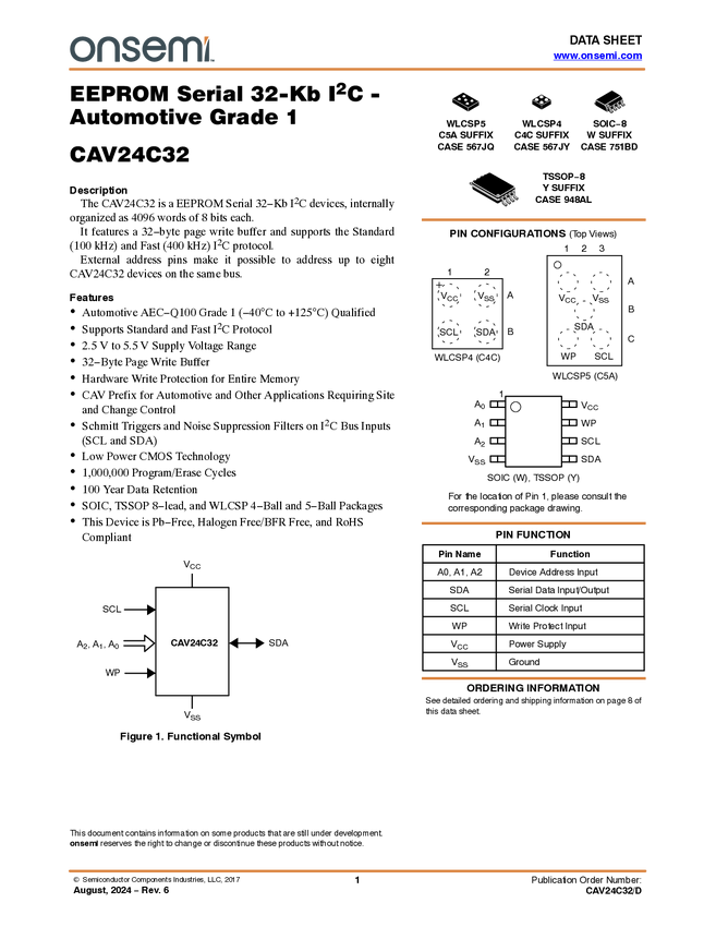 CAV24C32 EEPROM Serial 32-Kb I<sup>2C - Automotive Grade