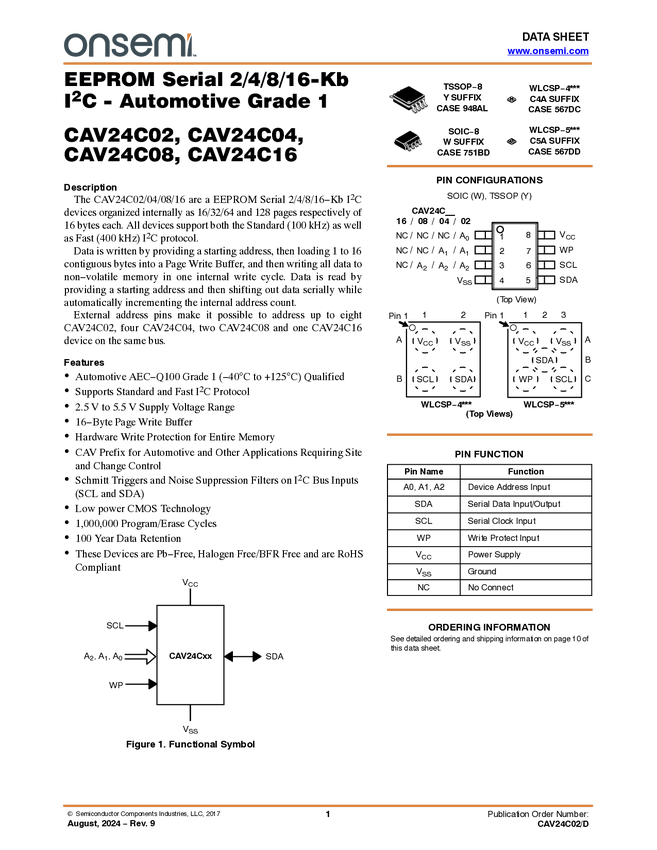 CAV24C02 EEPROM Serial 16-Kb I<sup>2C - Automotive Grade
