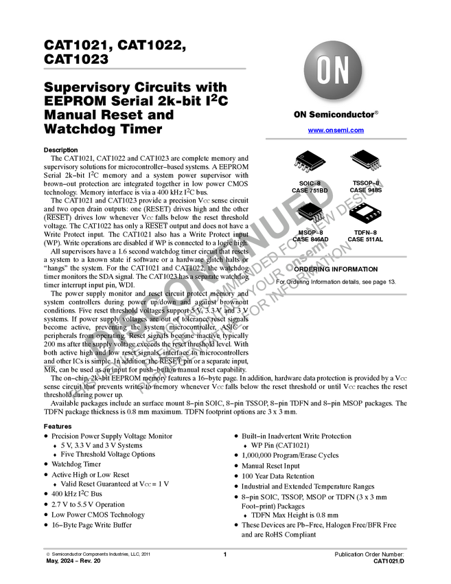 CAT1021 EEPROM Serial 2-Kb I<sup>2C CPU Supervisor