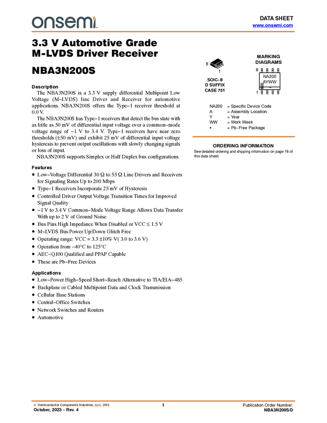 NBA3N200S M-LVDS Driver Receiver Automotive Grade 3.3 V