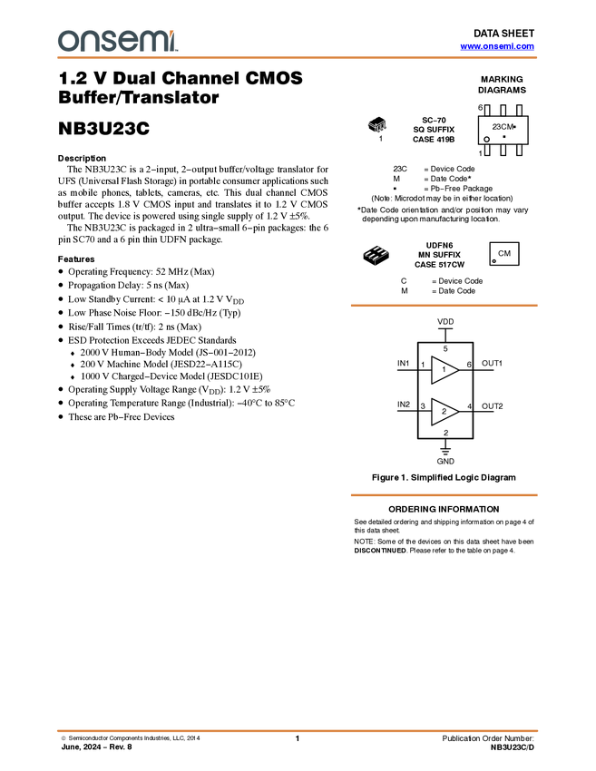 NB3U23C 1.2 V Dual Channel CMOS Buffer / Translator