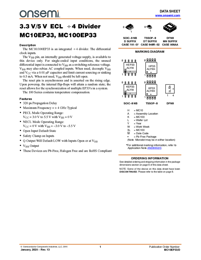 MC10EP33 3.3 V / 5.0 V ECL ÷·4 Divider