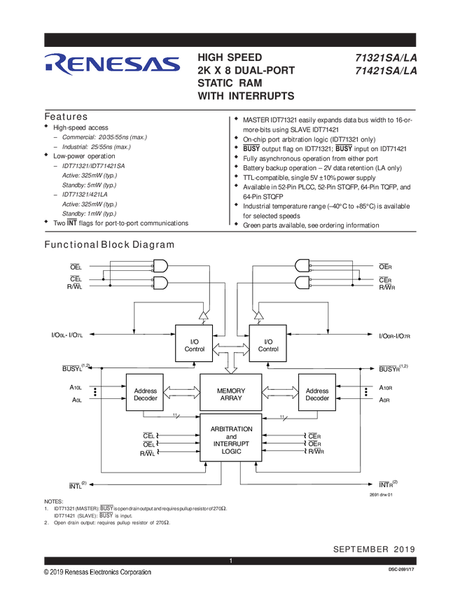 71321LA55J 2K x 8 Dual-Port RAM w/Int