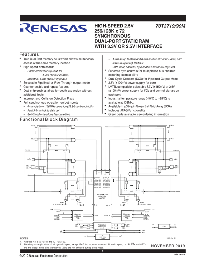 256K x 72 Sync, 3.3V/2.5V Dual-Port