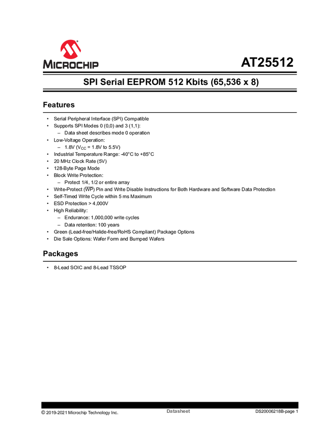 AT25512 SPI Serial EERPOM 512 Kbits Complete Datasheet