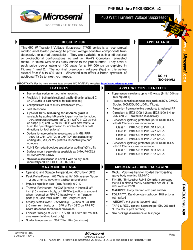 - P4KE100Ae3/TR13, P4KE100CAe3/TR13, P4KE100Ce3/TR13, P4KE100e3/TR13, P4KE10Ae3/TR13, P4KE10CAe3/TR13, P4KE10Ce3/TR13, P4KE10e3/TR13, P4KE110Ae3/TR13, P4KE110CAe3/TR13, P4KE110Ce3/TR13, P4KE110e3/TR13, P4KE11Ae3/TR13, P4KE11CAe3/TR13, P4KE11Ce3/TR13, P4KE11e3/TR13, P4KE120Ae3/TR13, P4KE120CAe3/TR13, P4KE120Ce3/TR13, P4KE120e3/TR13, P4KE12Ae3/TR13, P4KE12CAe3/TR13, P4KE12Ce3/TR13, P4KE12e3/TR13, P4KE130Ae3/TR13, P4KE130CAe3/TR13, P4KE130Ce3/TR13, P4KE130e3/TR13, P4KE13Ae3/TR13, P4KE13CAe3/TR13