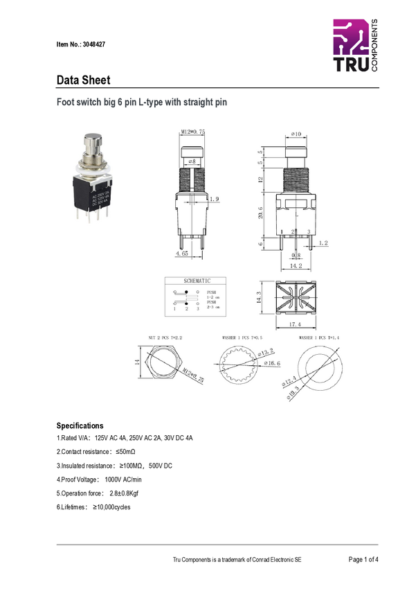 TC-12193708 TRU COMPONENTS TC-12193708 Przełącznik DPDT z prostym sworzniem Maksymalne...