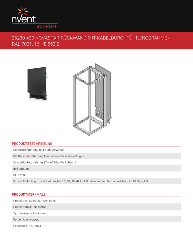 25230430 Panel tylny nVent SCHROFF 25230430 25230430, 1 szt.