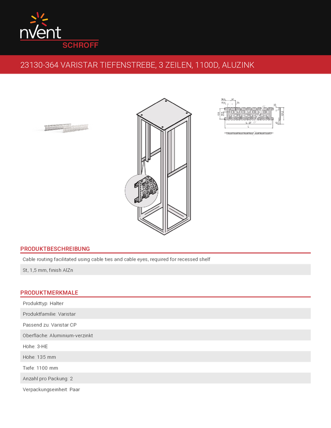 23130364 Rozpórka głębokości nVent SCHROFF 23130364 23130364, 1 szt.