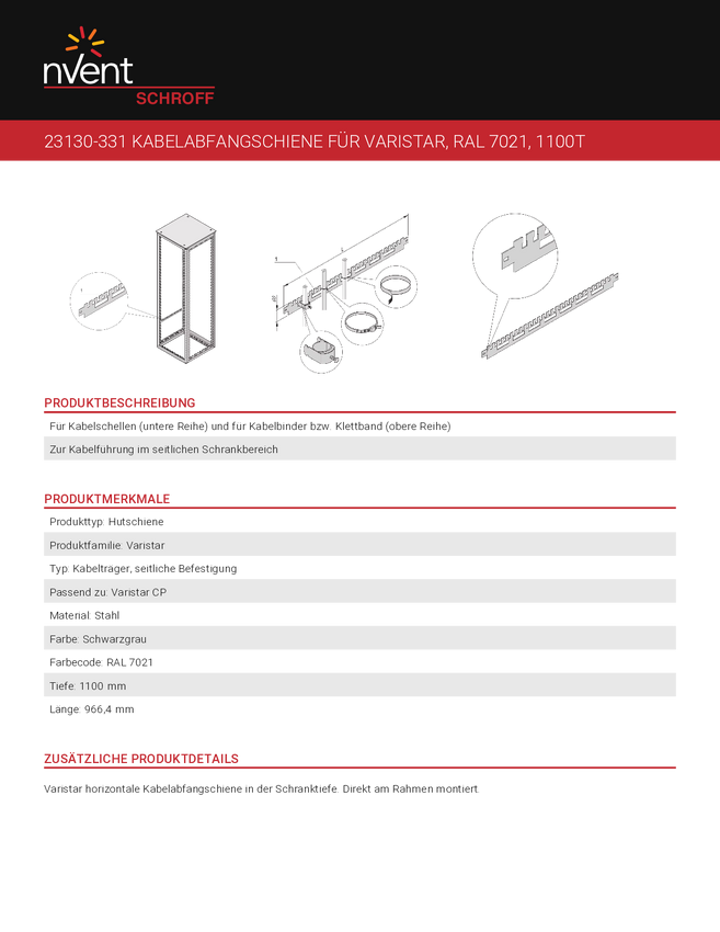 23130331 Szyna podtrzymująca kable nVent SCHROFF 23130331 23130331, 1 szt.