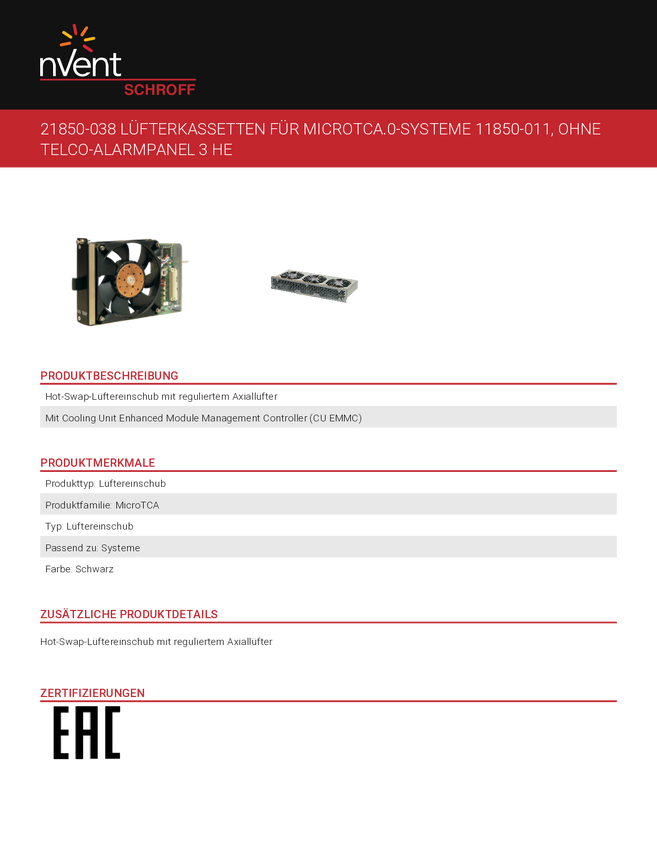 21850038 Kaseta z wentylatorem nVent SCHROFF 21850038 21850038, 1 szt.