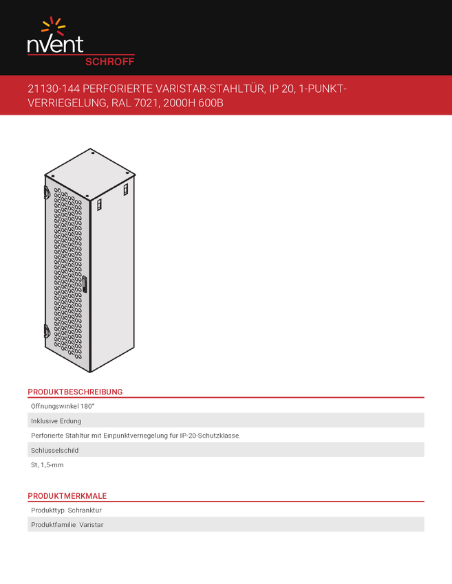 21130144 nVent SCHROFF 21130144 Drzwi wentylowana (S x W) 600 mm x 2000 mm 1 szt.