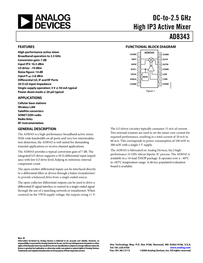 AD8343 DC-to-2.5 High IP3 Active Mixer