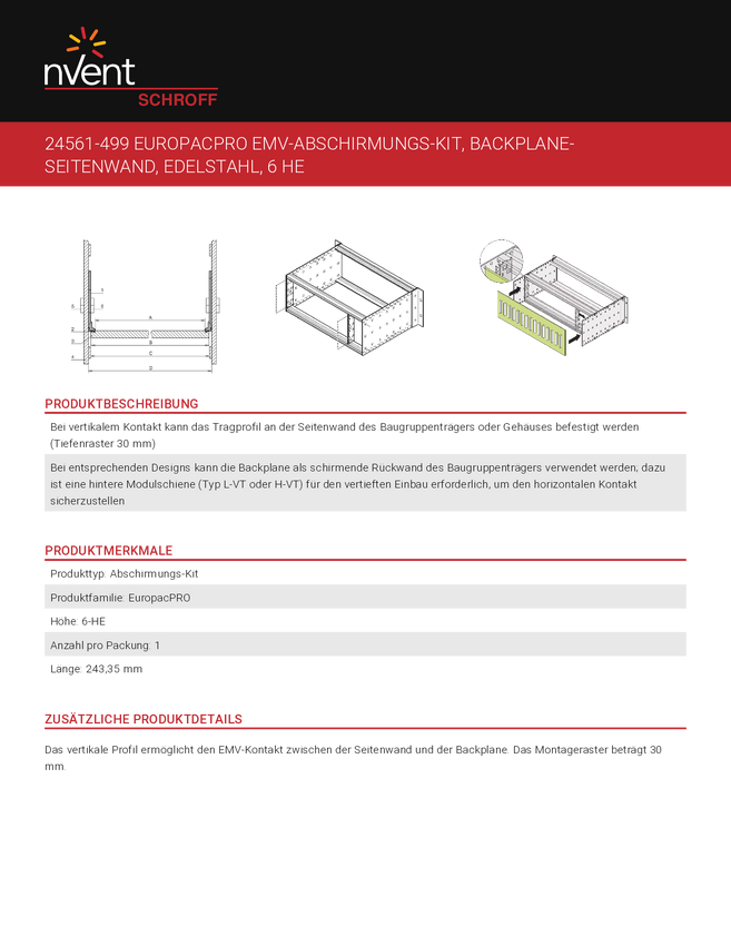 24561499 nVent SCHROFF 24561499 Zestaw ekranujący EMC 1 szt.