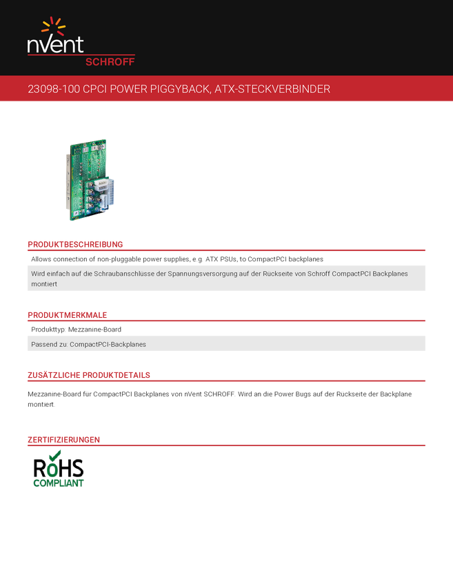 23098100 Power Piggyback nVent SCHROFF 23098100 23098100, 1 szt.