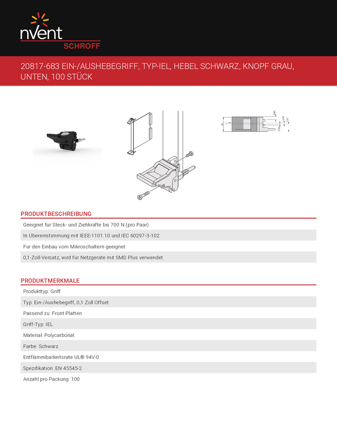 Uchwyt IEL nVent SCHROFF 20817683 20817683, 1 szt.