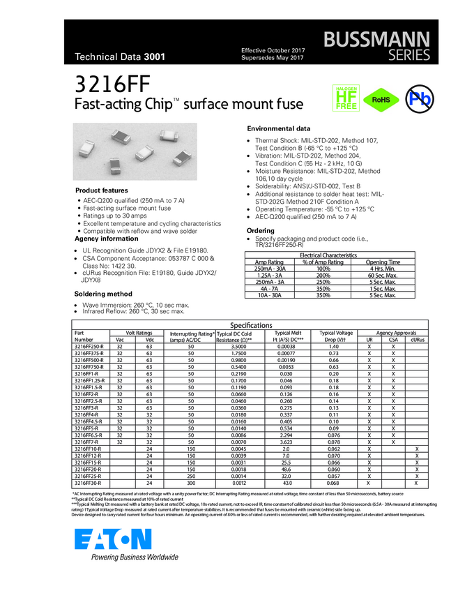 TR-3216FF1-R Eaton TR-3216FF1-R Bezpiecznik SMD 3000 szt. taśma na dużej rolce