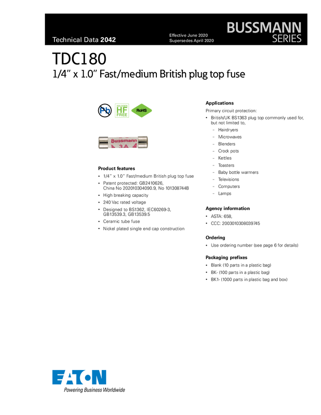 BK1-TDC180-13A Eaton BK1-TDC180-13A Bezpiecznik Zawartość 1 szt. towar pakowany luzem