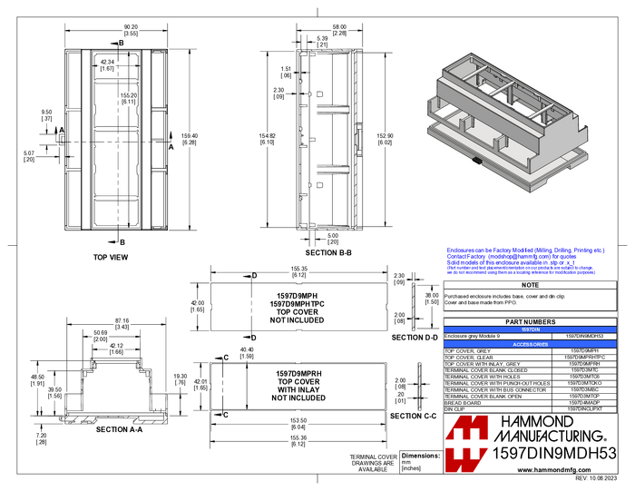 1597D9MPH Pokrywa Hammond Electronics 1597D9MPH 1597D9MPH, ABS-PC, 1 szt.