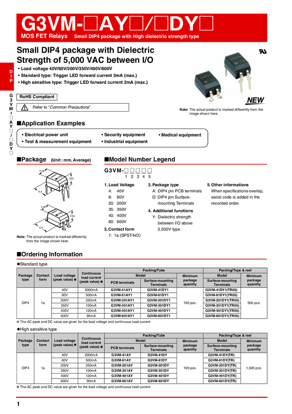 G3VM-601AY2 Przekaźnik PhotoMOS Omron G3VM-601AY2, 1 szt.