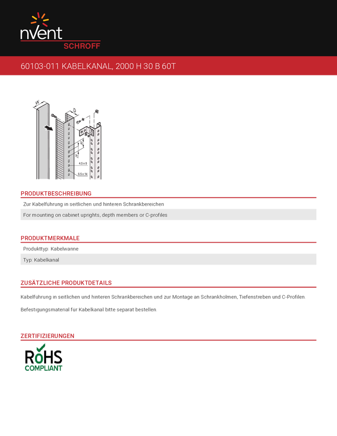 60103011 Kanał kablowy nVent SCHROFF 60103011 60103011, 2 szt.