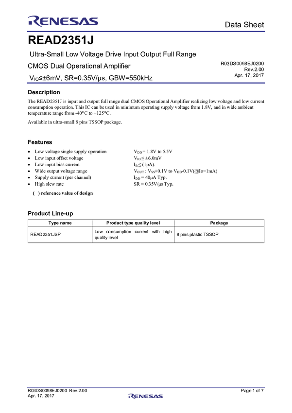 READ2351JSP#GC3 Ultra-Small Low Voltage Drive Input Output Full Range CMOS Dual Operational...