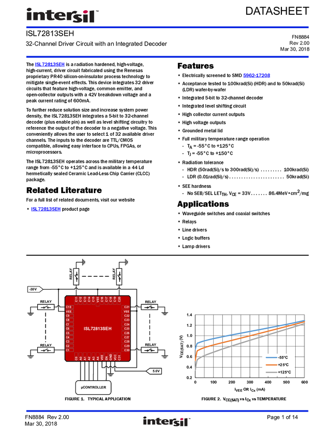 ISL72813SEHX/SAMPLE 32-Channel Driver Circuit with an Integrated Decoder