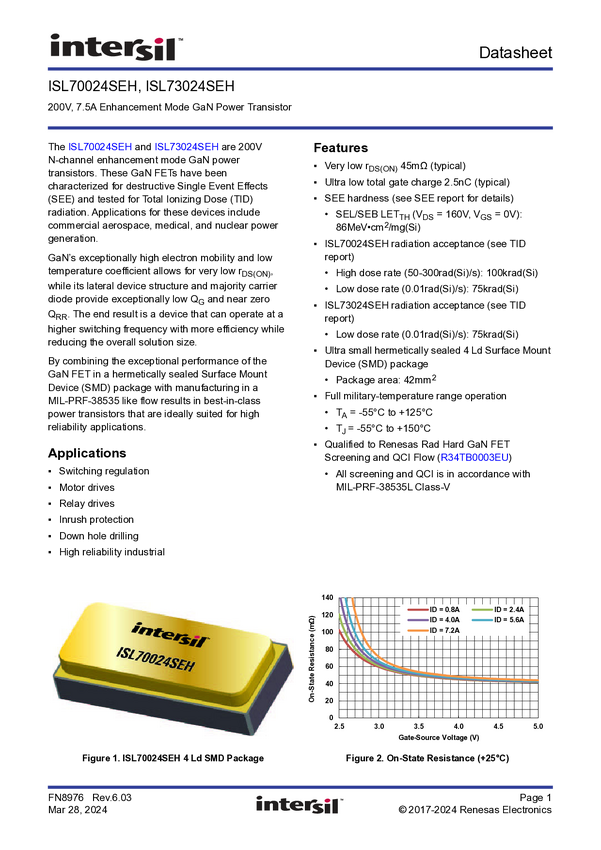 ISL73024SEHL/PROTO, ISL73024SEHML, ISL73024SEHMX, ISL73024SEH