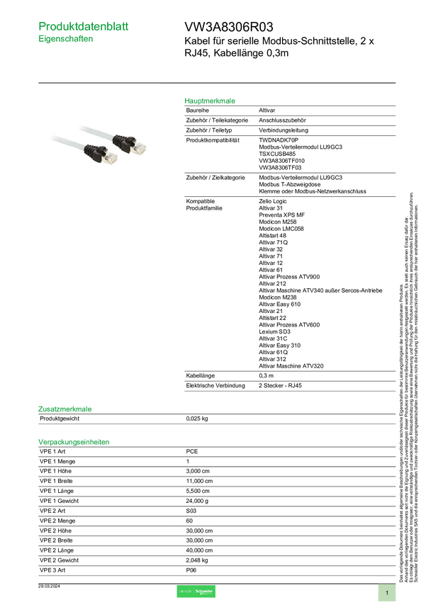 VW3A8306R03 Schneider Electric VW3A8306R03 Akcesorium do wyłącznika mocy 1 szt.