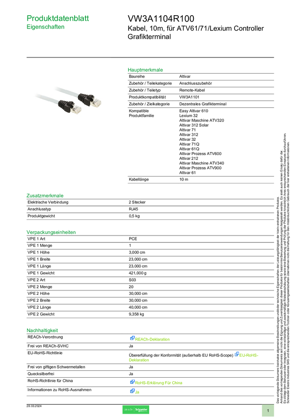 VW3A1104R100 Schneider Electric VW3A1104R100 Akcesorium do wyłącznika mocy 1 szt.