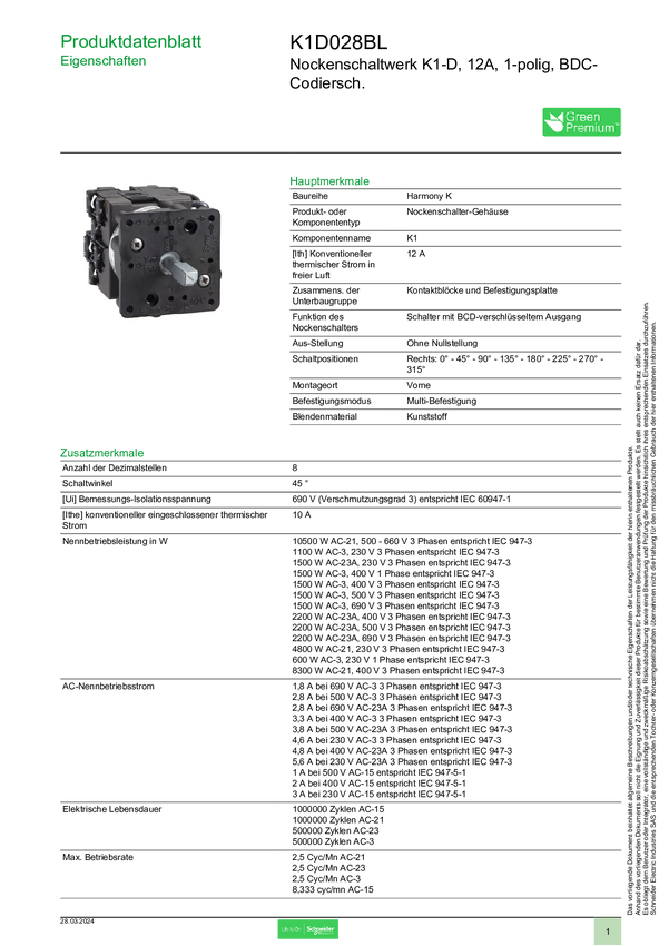K1D028BL Schneider Electric Przełącznik krzywkowy 1 szt.