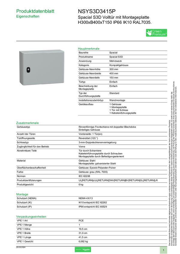 NSYS3D3415P Schneider Electric PanelSeT S3DB NSYS3D3415P Szafka instalacyjna 400 x 300...