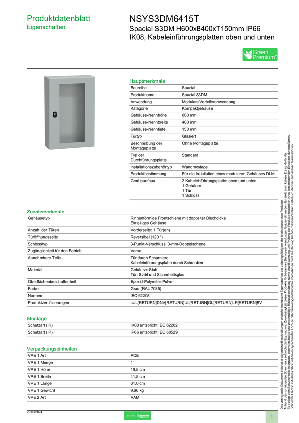 NSYS3DM6415T Schneider Electric PanelSeT S3DB NSYS3DM6415T Szafka instalacyjna 400 x 600...