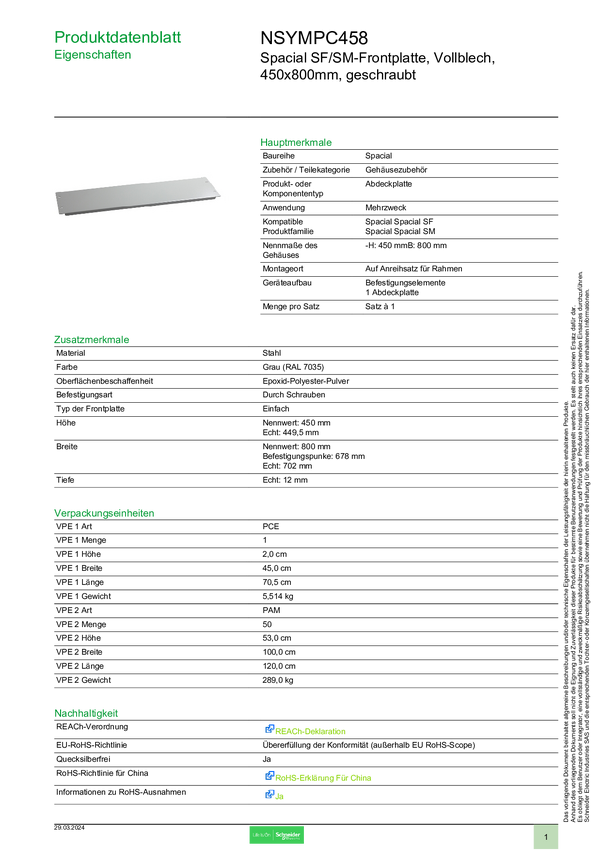 NSYMPC458 Panel przedni Schneider Electric NSYMPC458 1 szt.