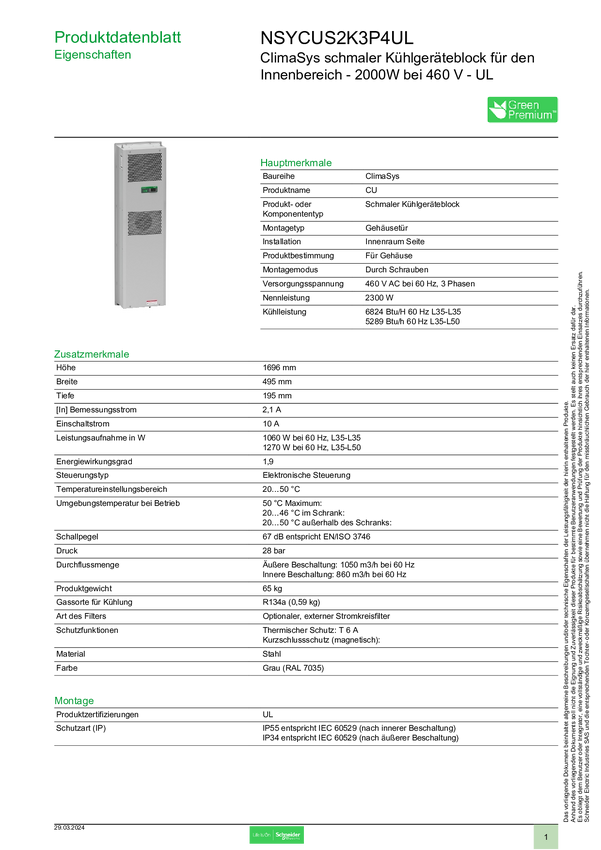 NSYCUS2K3P4UL Blok jednostki chłodzącej Schneider Electric NSYCUS2K3P4UL