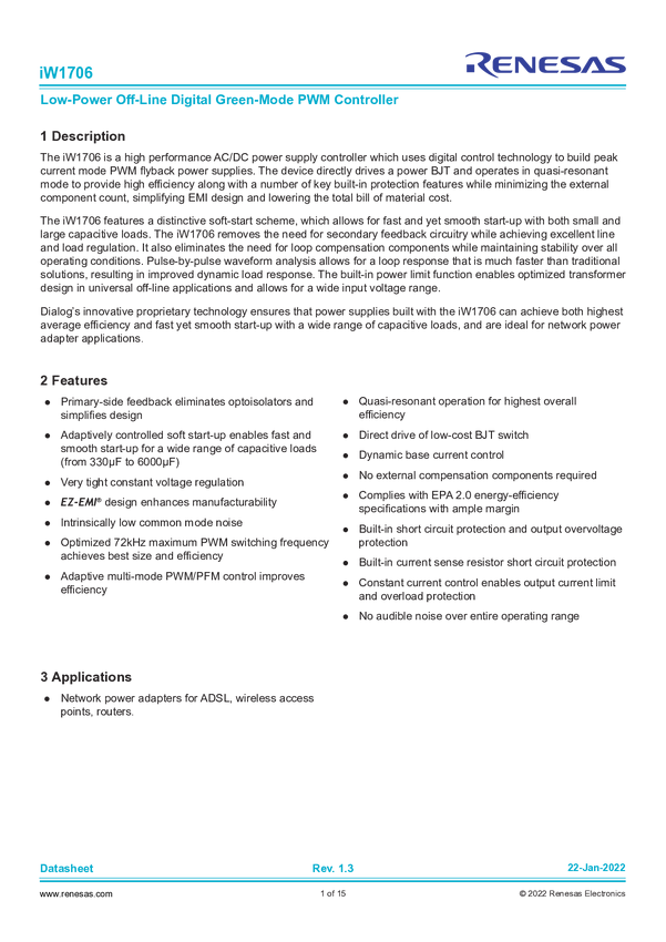 iW1706-00 PrimAccurate™ Off-Line Digital PWM Controller in a SOT-23 Package