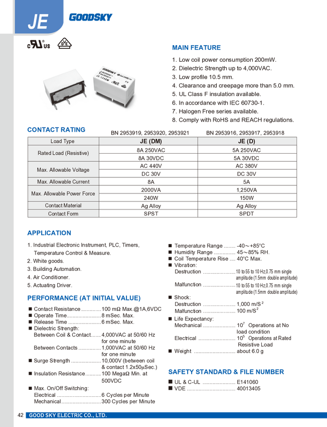 JE-112DM GoodSky JE-112DM Przekaźnik SMT 12 V/DC 8 A 1 NO 1 szt.