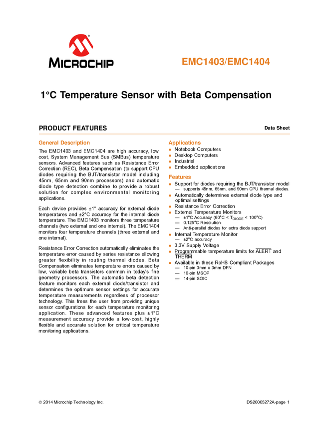 EMC1403/EMC1404 1C Temperature Sensor with Beta Compensation Data Sheet
