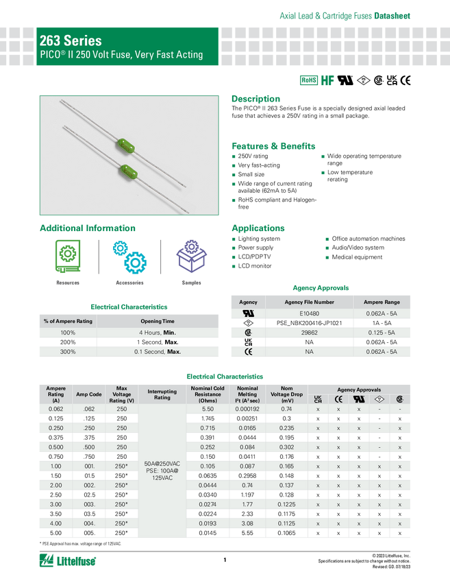 0263001.WRT1L Littelfuse 0263001.WRT1L 0263001.WRT1L Bezpiecznik Pico 1 szt. taśma na duż...