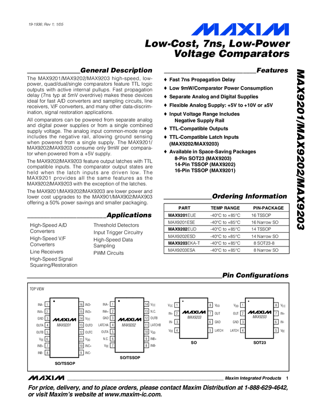 MAX9202 Low-Cost, 7ns, Low-Power Voltage Comparators